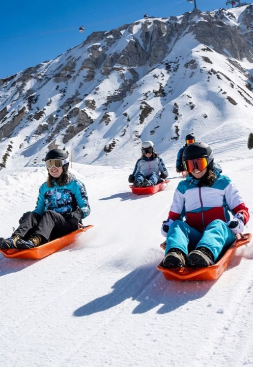 Tubing, canopy, trineos, juegos en la nieve, pista de esquí para principiantes y más.